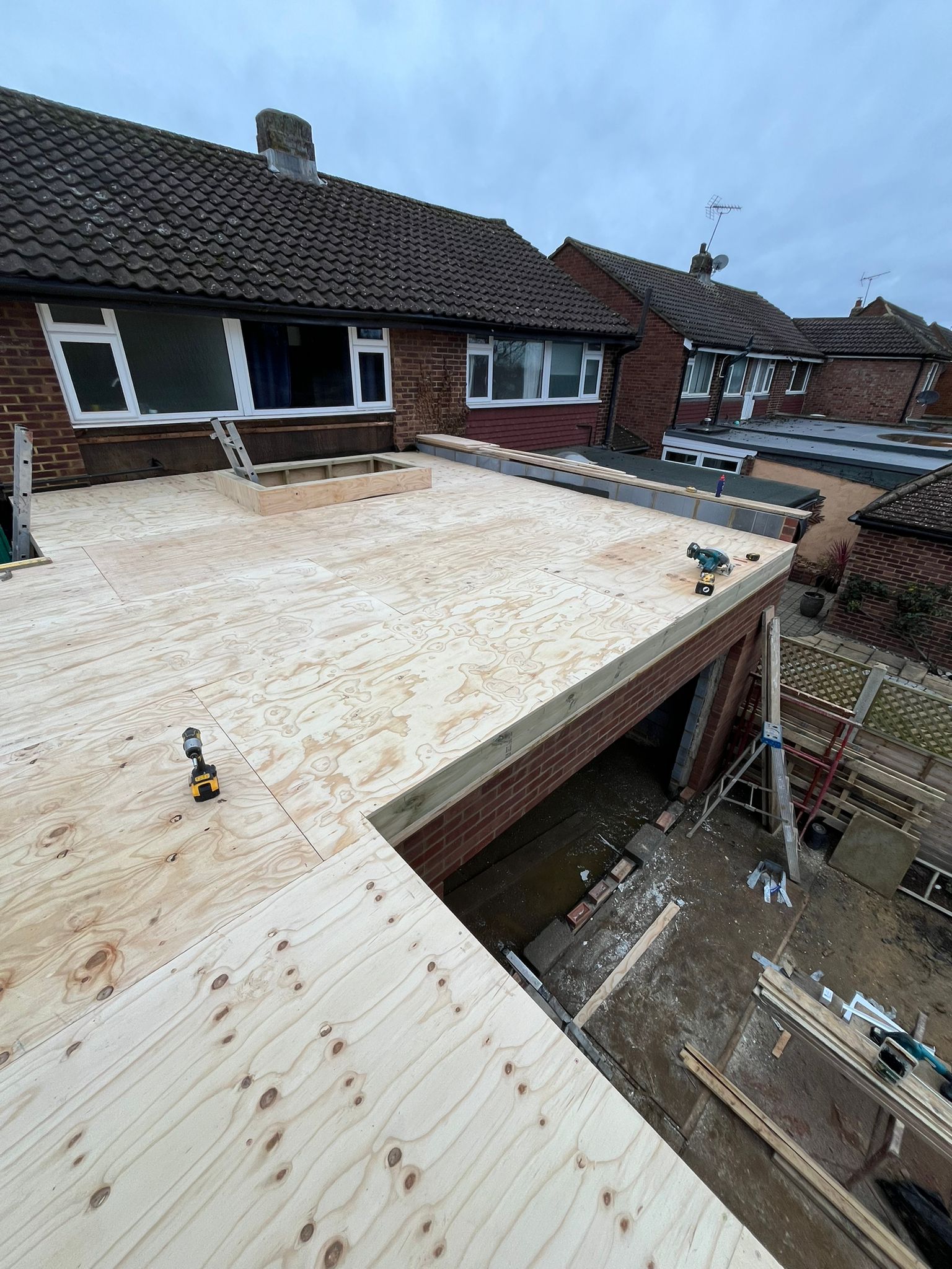 This project involved completing the roof on a residential extension in Sunbury. Our team carefully constructed and installed the roof structure, ensuring full alignment with the existing property while providing a durable, weather-resistant finish.